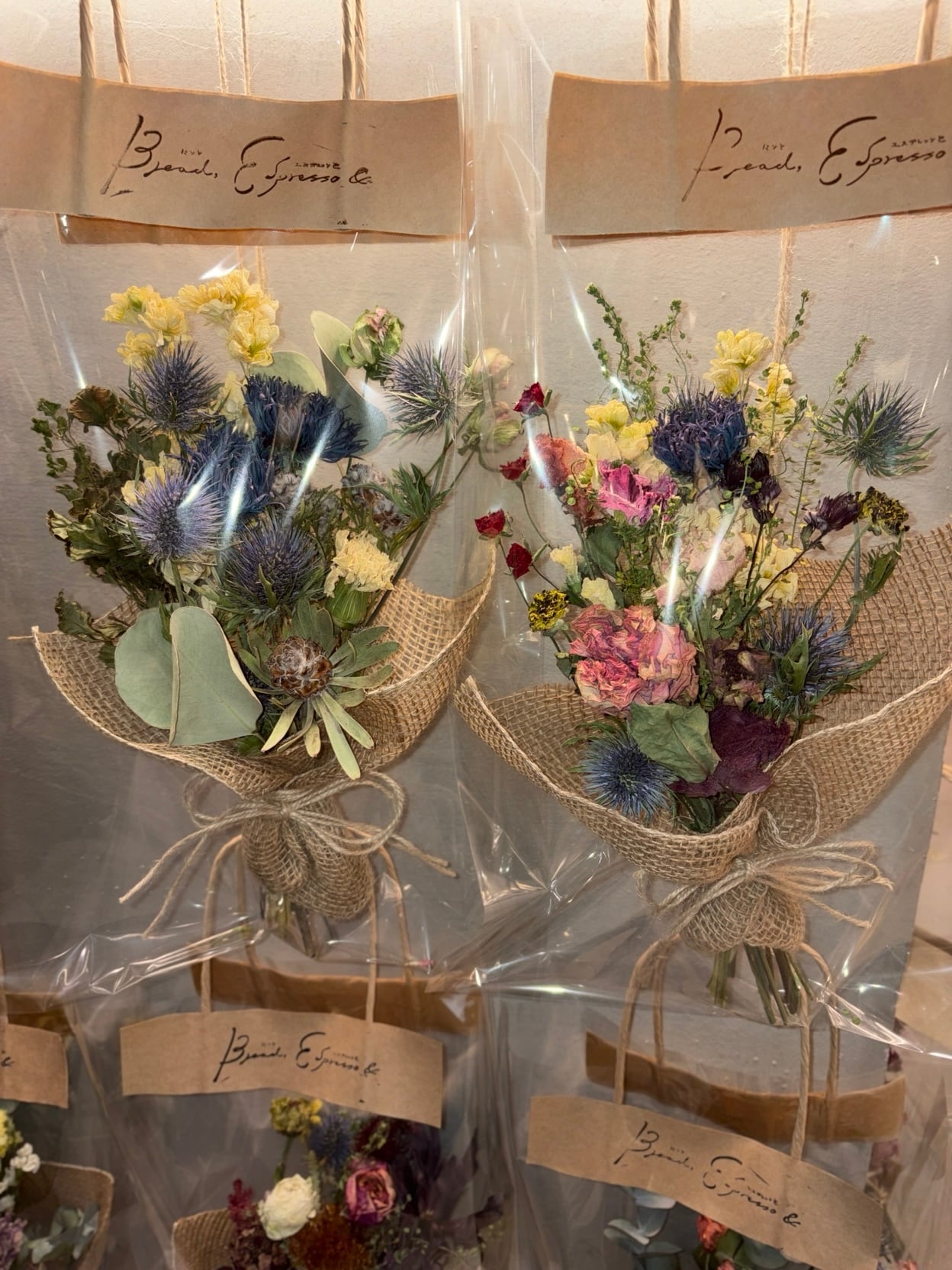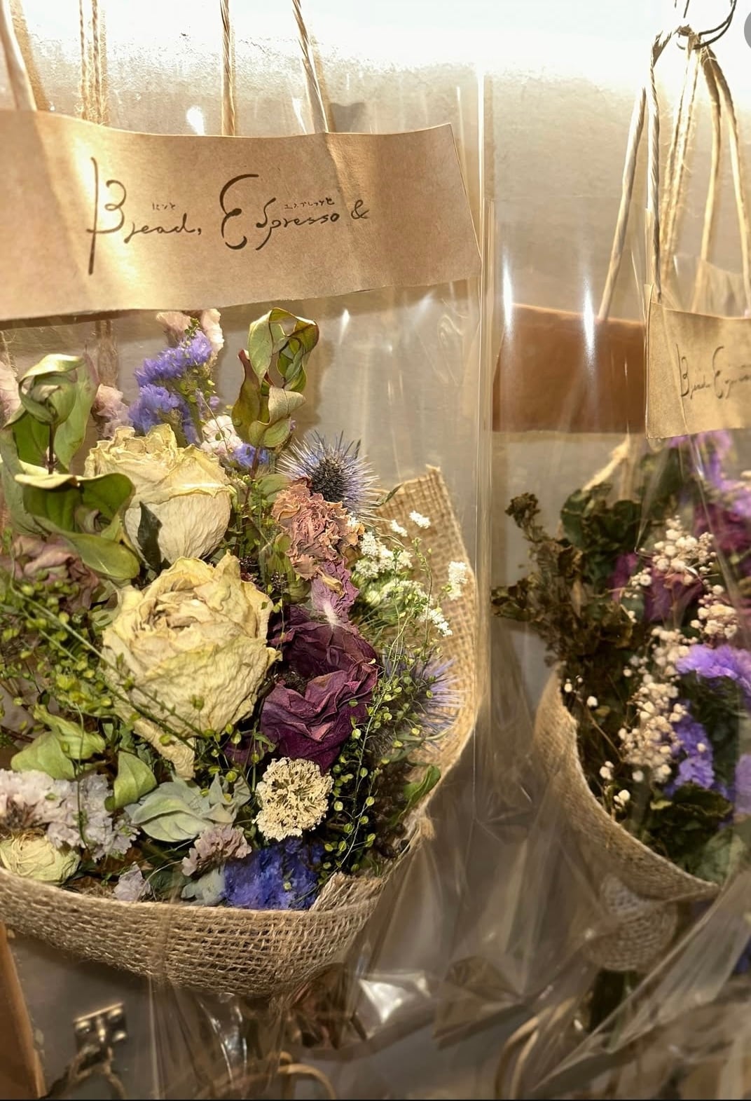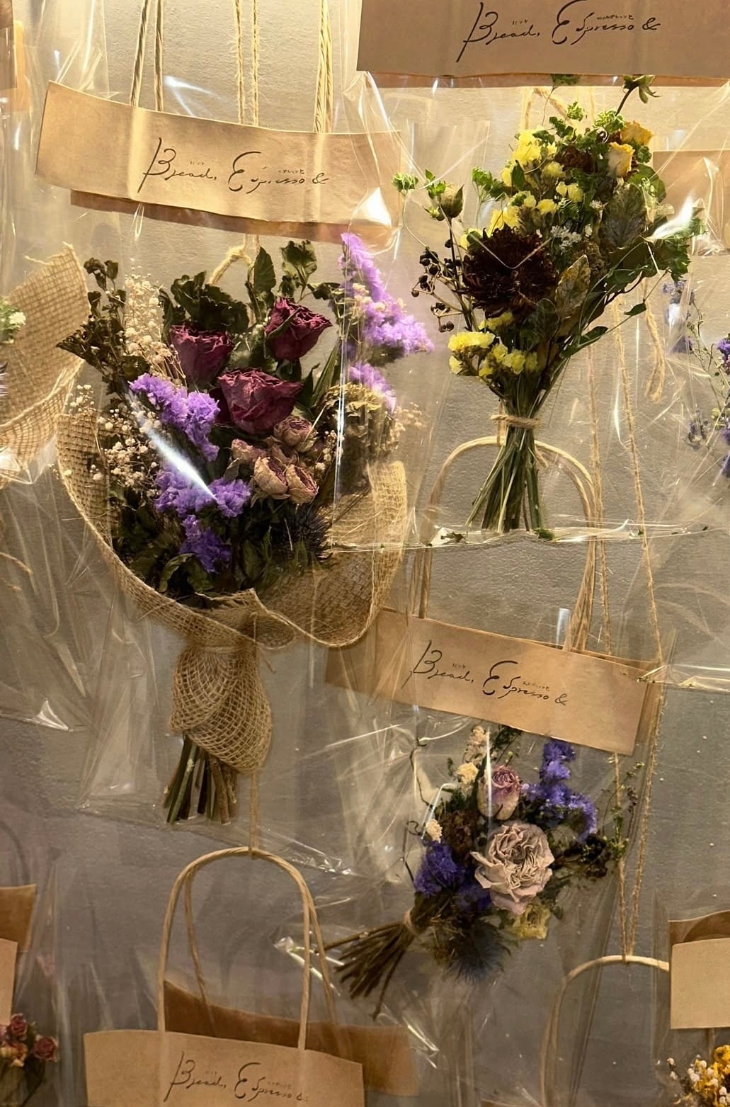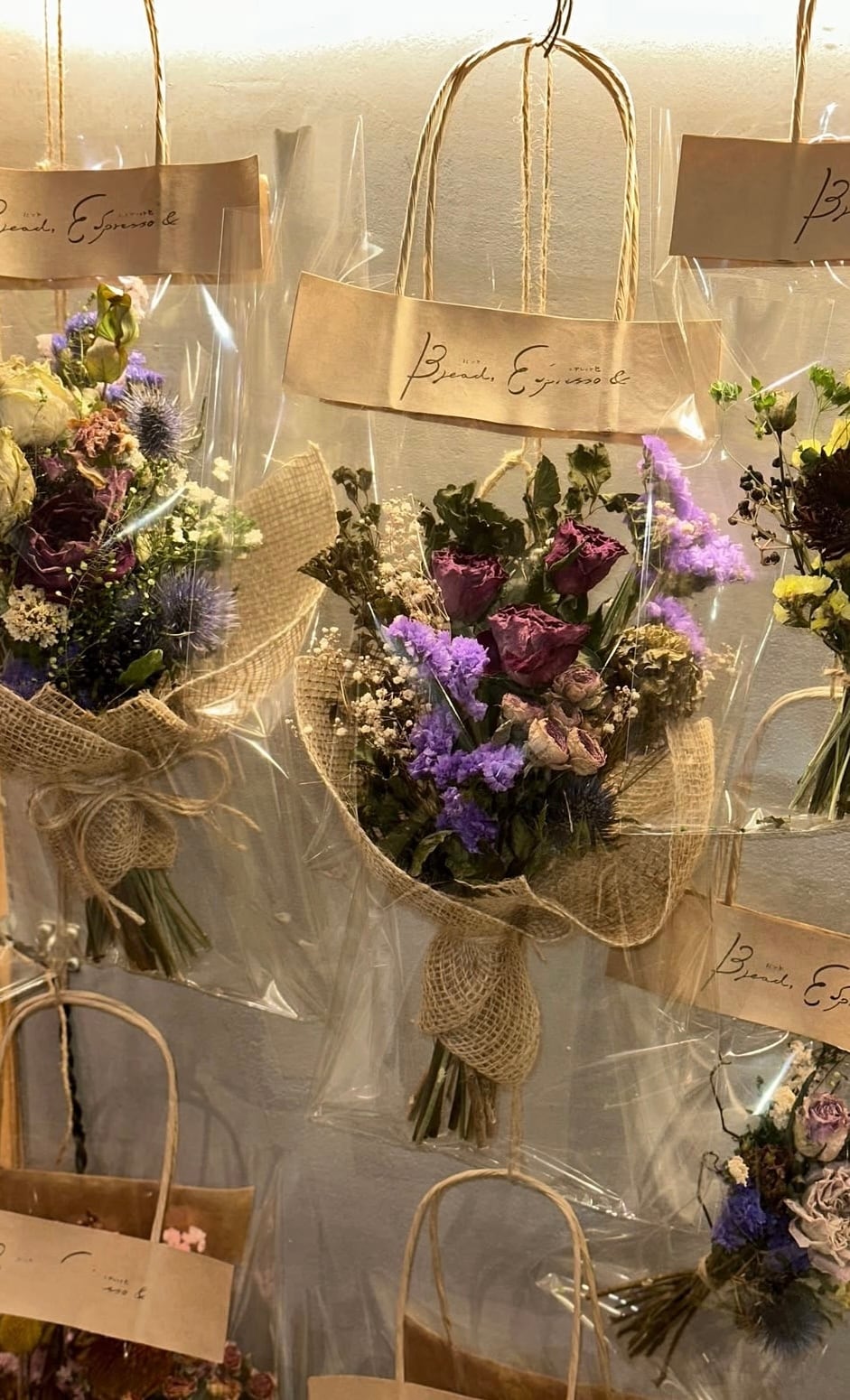 使用するお花は全てドライフラワーのため、時間とともに深まる色合いもお楽しみいただけます。